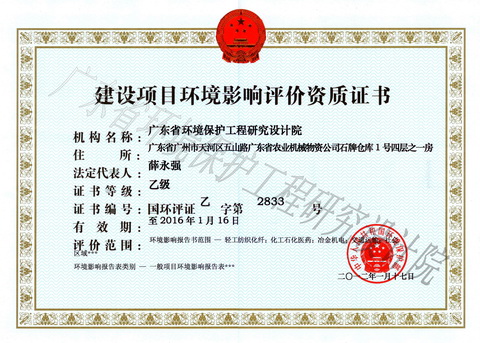 建设项目环境影响评价资质证书